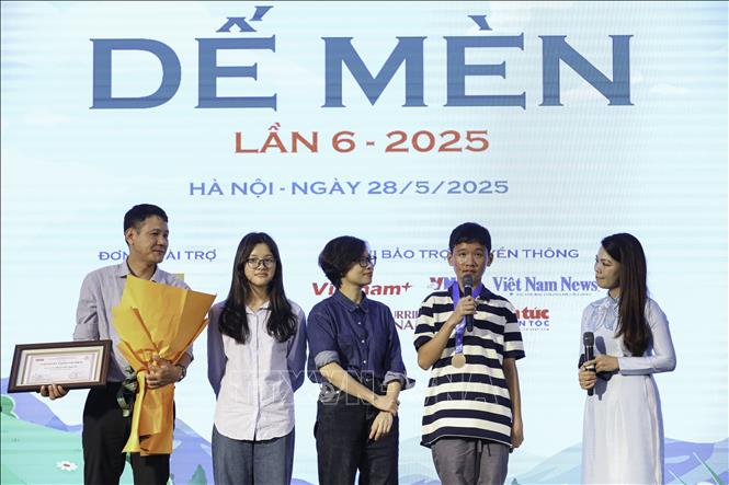 Hà Nội (TTXVN 28/5/2025) Giải thưởng Thiếu nhi Dế Mèn lần 6 năm 2025 của báo Thể thao và Văn hóa (Thông tấn xã Việt Nam) đã khép lại với Lễ trao giải thưởng diễn ra chiều 28/5, tại trụ sở Trung tâm Thông tấn quốc gia (số 5 phố Lý Thường Kiệt, quận Hoàn Kiếm, Hà Nội). Giải thưởng năm nay được trao cho những sáng tác, trình diễn nghệ thuật xuất sắc “của thiếu nhi” và “vì thiếu nhi”.