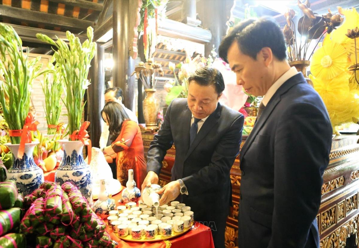 Các đại biểu dâng hương tưởng niệm Đức Quốc Tổ Lạc Long Quân (3/4/2025). Ảnh: Tạ Toàn – TTXVN