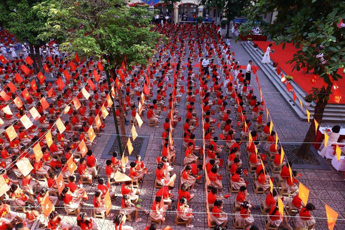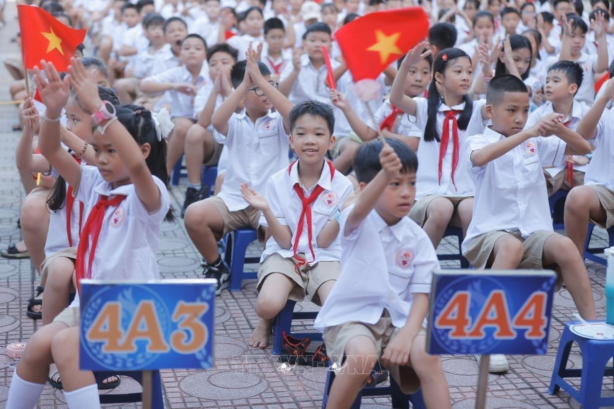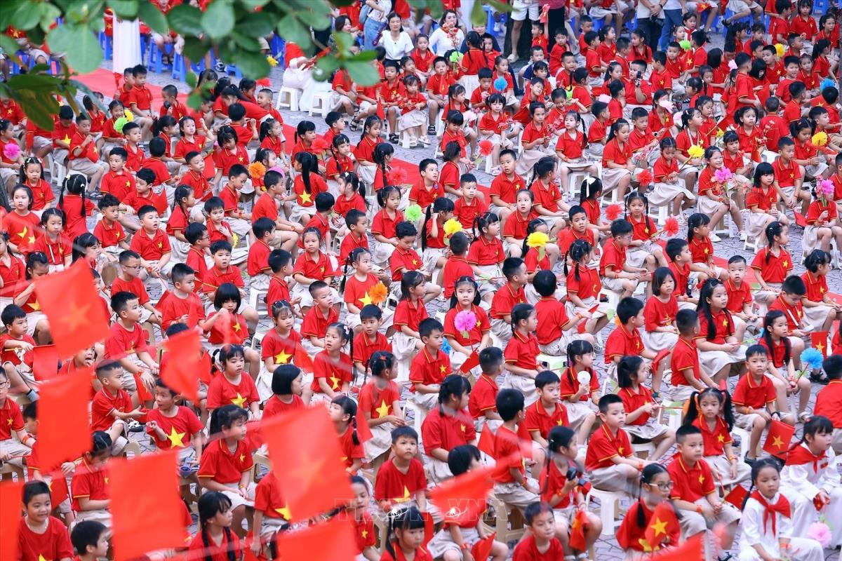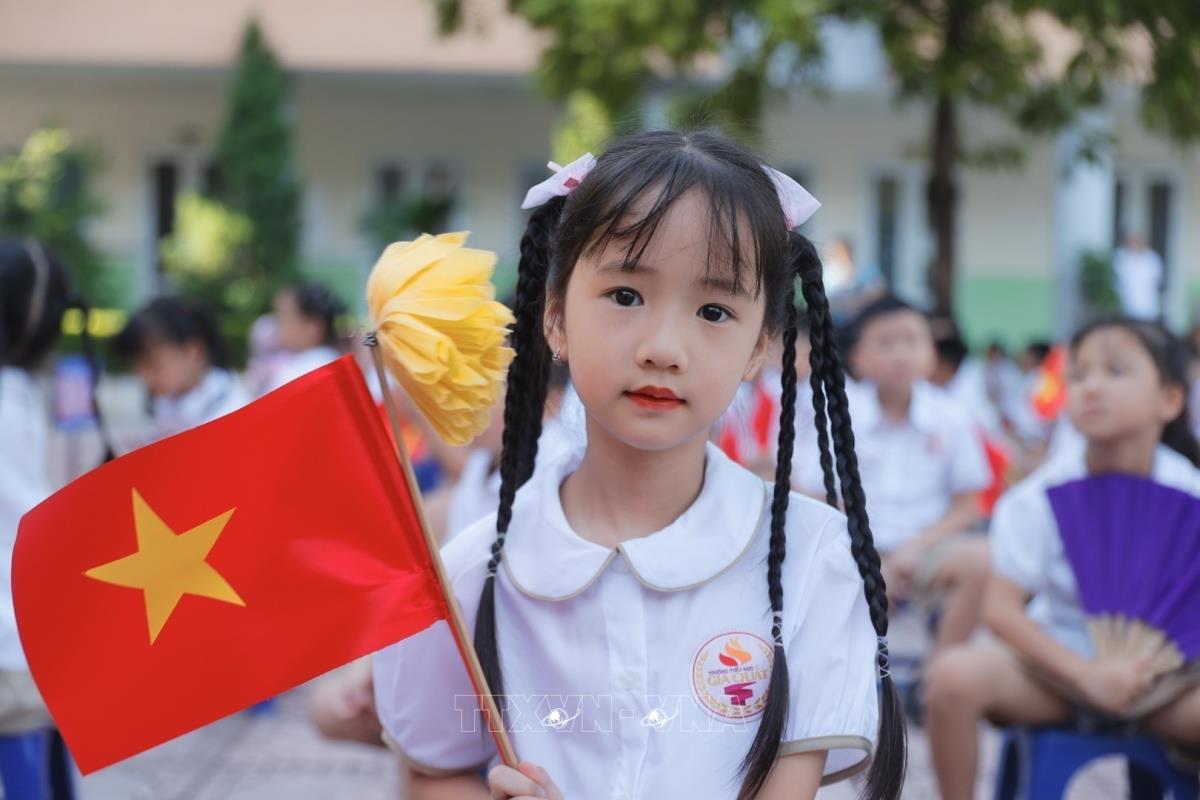 Sáng 5/9/2025, Học sinh dự khai giảng năm học mới tại trường tiểu học Gia Quất (Bồ Đề). Ảnh: Minh Quyết - TTXVN