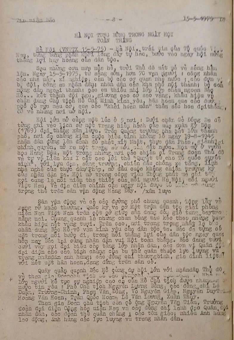 hồ sơ HS_QPA_000168464Việt Nam Thông tấn xã đưa tin về ngày giải phóng miền Nam, thống nhất đất nước 30/4/1975