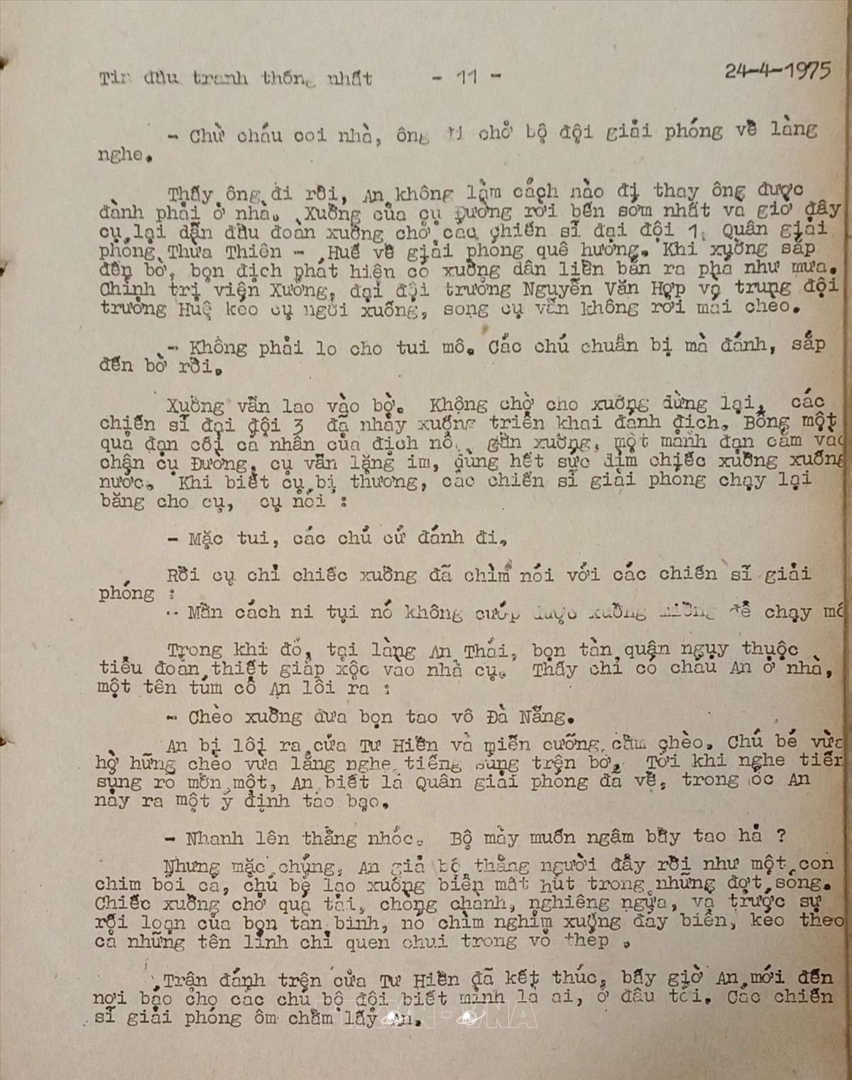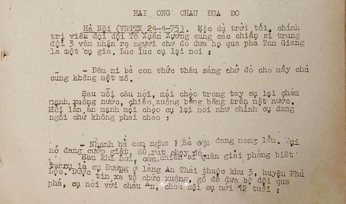 Hai ông cháu đưa đò Tin đấu tranh thống nhất của Việt Nam Thông tấn xã, ngày 24/4/1975 Từ khóa:Giải phóng miền Namthống nhất đất nướcThông tấn xã Giải phóngphá Tam GiangHuế