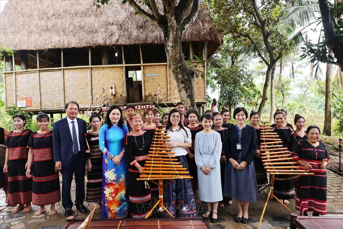 Hai Phu nhân Thủ tướng Việt Nam và Nhật Bản thăm Làng Văn hóa - Du lịch các dân tộc Việt Nam (28/4/2025). Ảnh: Minh Đức – TTXVN