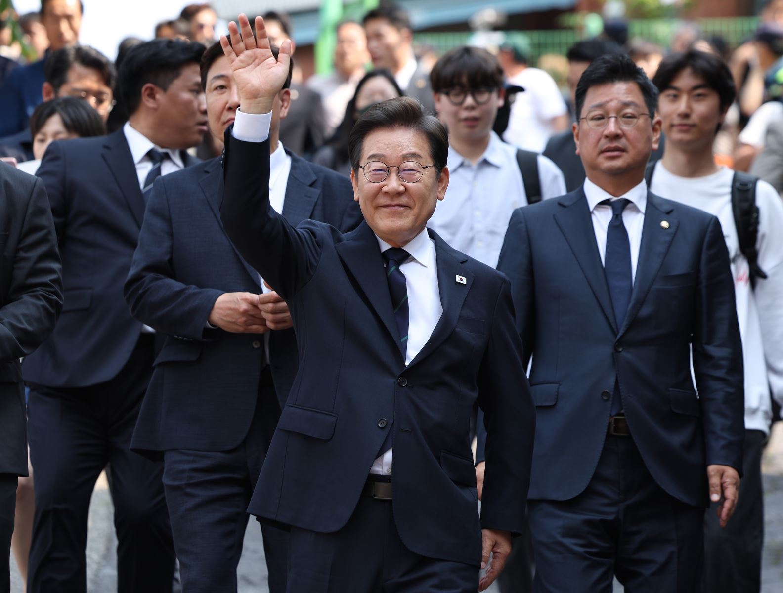 Ứng cử viên Tổng thống Hàn Quốc Lee Jae-myung của đảng Dân chủ sau khi bỏ phiếu sớm bầu Tổng thống tại điểm bầu cử ở Seoul ngày 29/5/2025. Ảnh: Yonhap/TTXVN
