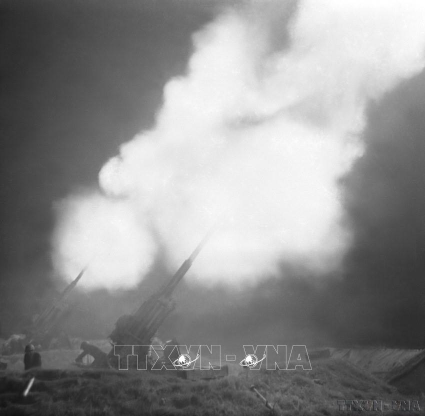 Thắng lợi trong ký kết hiệp định Paris là một trong những hệ quả của Chiến dịch Tổng tiến công Mậu Thân 1968. Trong ảnh: Pháo binh quân giải phóng bắn vào sân bay Tây Lộc, Huế (1968). Ảnh: Tư liệu TTXVN