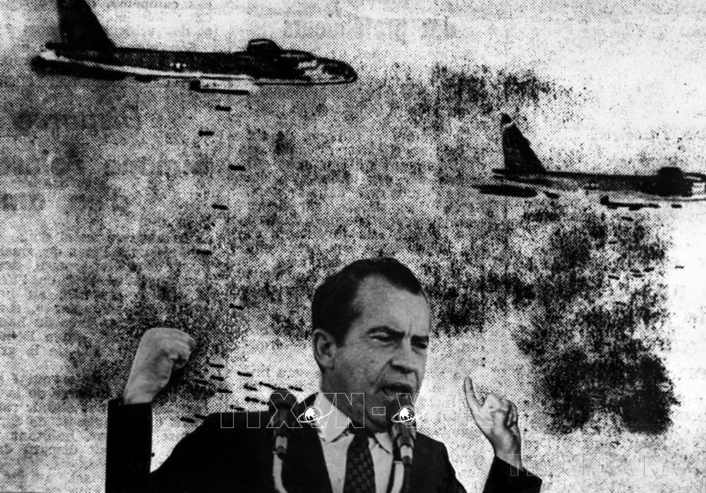 Sau gần 4 năm tìm mọi cách phá hoại cuộc thương lượng, đầu tháng 4/1972, Tổng thống Hoa Kỳ R.Nixon ra lệnh đánh phá trở lại miền Bắc Việt Nam với quy mô lớn hòng buộc nhân dân ta phải chấp nhận các điều kiện đàm phán trên thế mạnh của Hoa Kỳ. Ảnh: Tư liệu TTXVN