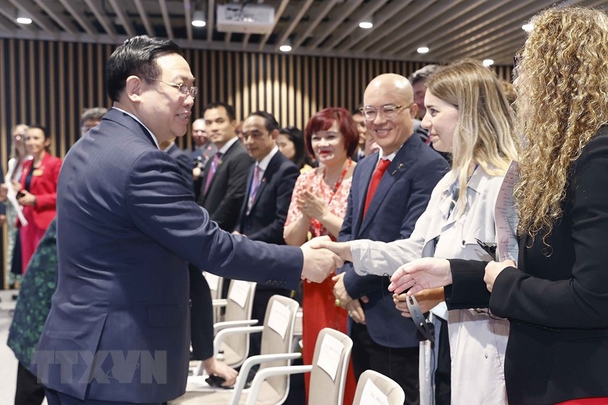Chủ tịch Quốc hội Vương Đình Huệ với Giáo sư Maggie Dallman và các đại biểu. (Ảnh: Doãn Tấn/TTXVN)
