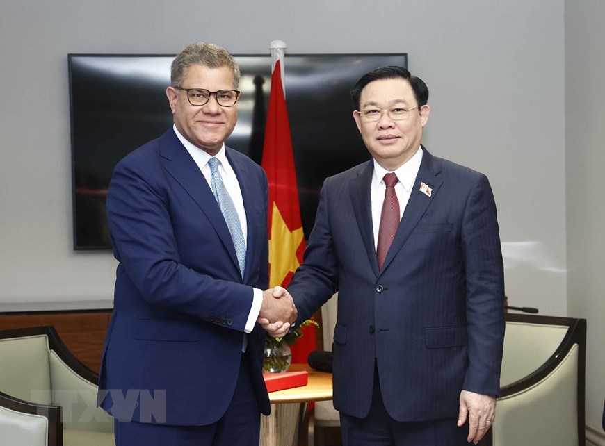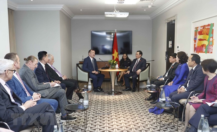 Chủ tịch Quốc hội Vương Đình Huệ tiếp ông Kenneth Atkinson, Chủ tịch Britcham cùng đại diện một số tập đoàn, quỹ đầu tư của Anh đang đầu tư, kinh doanh tại Việt Nam. (Ảnh: Doãn Tấn/TTXVN)