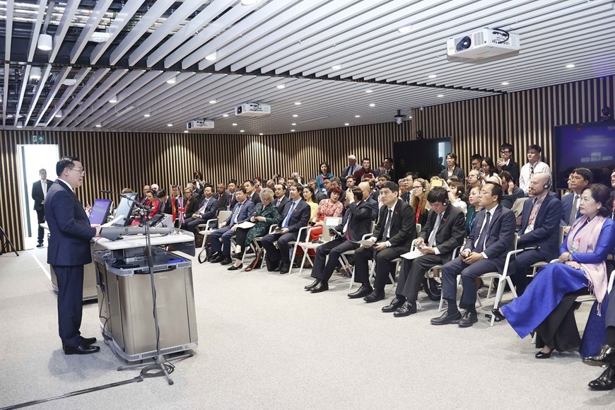 Tại trụ sở Trường Imperial College London, Chủ tịch Quốc hội Vương Đình Huệ dự Tọa đàm hợp tác giáo dục Việt Nam-Anh. (Ảnh: Doãn Tấn/TTXVN)