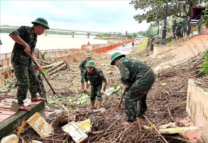 Quảng Trị (TTXVN 6/11/2025) Đợt mưa lũ vừa qua, ở tỉnh Quảng Trị có nhiều điểm, khu vực bị ngập sâu và chịu ảnh hưởng nặng nề. Nhằm giúp người dân sớm ổn định cuộc sống, các đơn vị, lực lượng quân đội ở tỉnh đã bố trí cán bộ, chiến sĩ hỗ trợ, sát cánh cùng nhân dân, chính quyền địa phương và các đơn vị, trường học… khẩn trương triển khai công tác dọn dẹp vệ sinh, khắc phục hậu quả sau mưa lũ ngay khi nước rút.