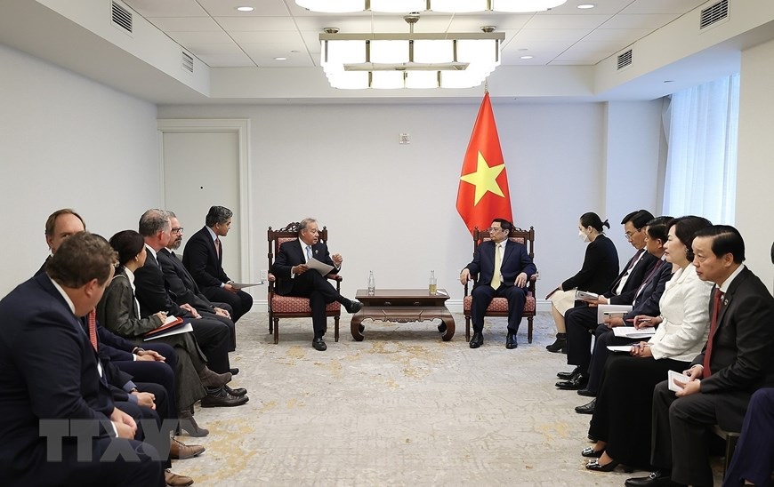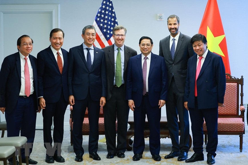 Hình ảnh Thủ tướng Phạm Minh Chính tiếp một số tập đoàn Hoa Kỳ đang đầu tư tại Việt Nam. (Ảnh: Dương Giang/TTXVN)