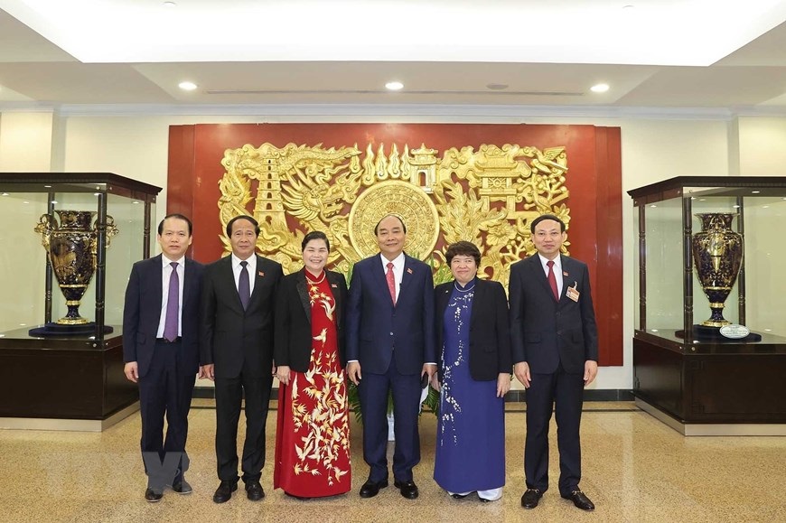 Thủ tướng Nguyễn Xuân Phúc và các đại biểu dự Hội nghị lần thứ nhất. (Ảnh: TTXVN)