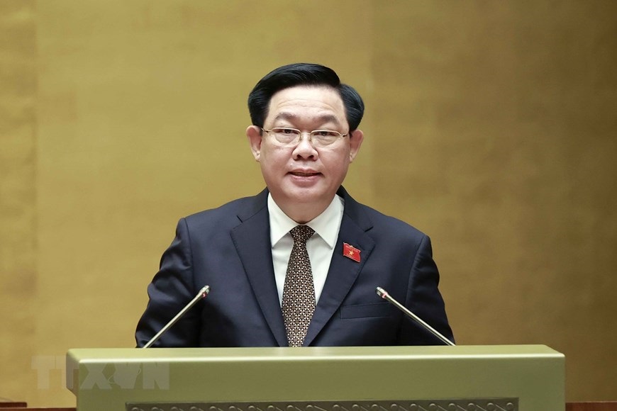 Chiều 24/6/2023, tại Hà Nội, Quốc hội họp phiên bế mạc Kỳ họp thứ 5, Quốc hội khóa XV. Chủ tịch Quốc hội Vương Đình Huệ phát biểu bế mạc kỳ họp. (Ảnh: Doãn Tấn/TTXVN)