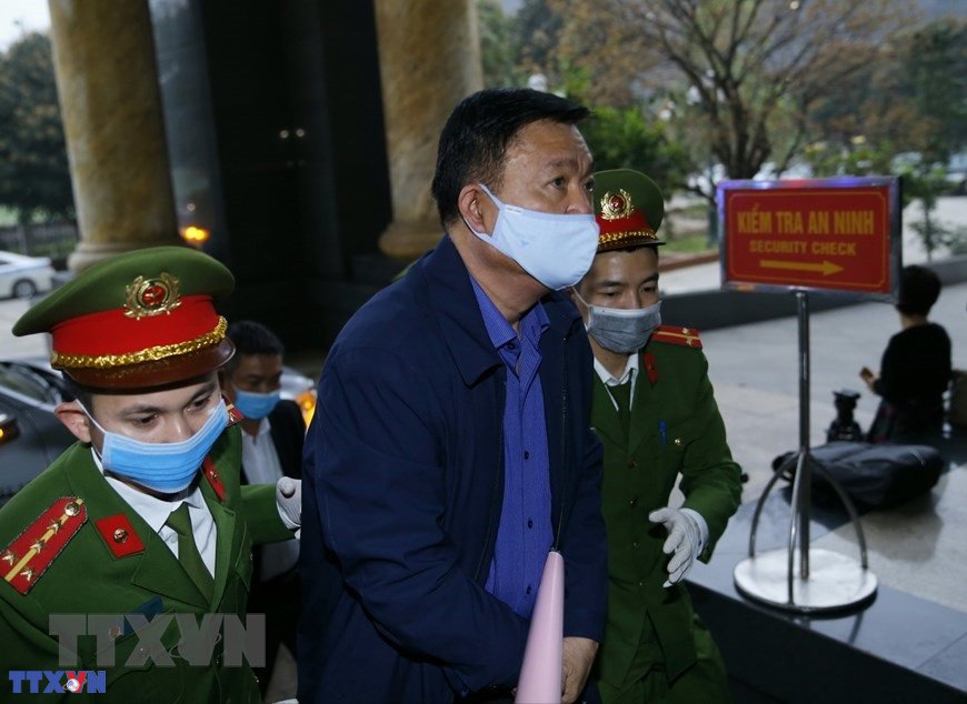 Cảnh sát dẫn giải bị cáo Đinh La Thăng vào phiên tòa xét xử. (Ảnh: Doãn Tấn/TTXVN)