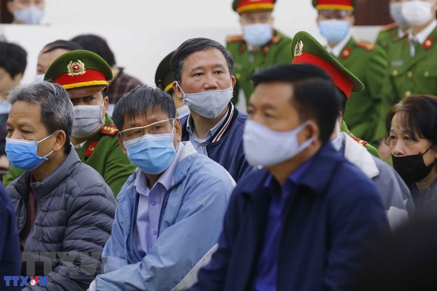Bị cáo Đinh La Thăng cùng đồng phạm tại phiên xét xử. (Ảnh: Doãn Tấn/TTXVN)