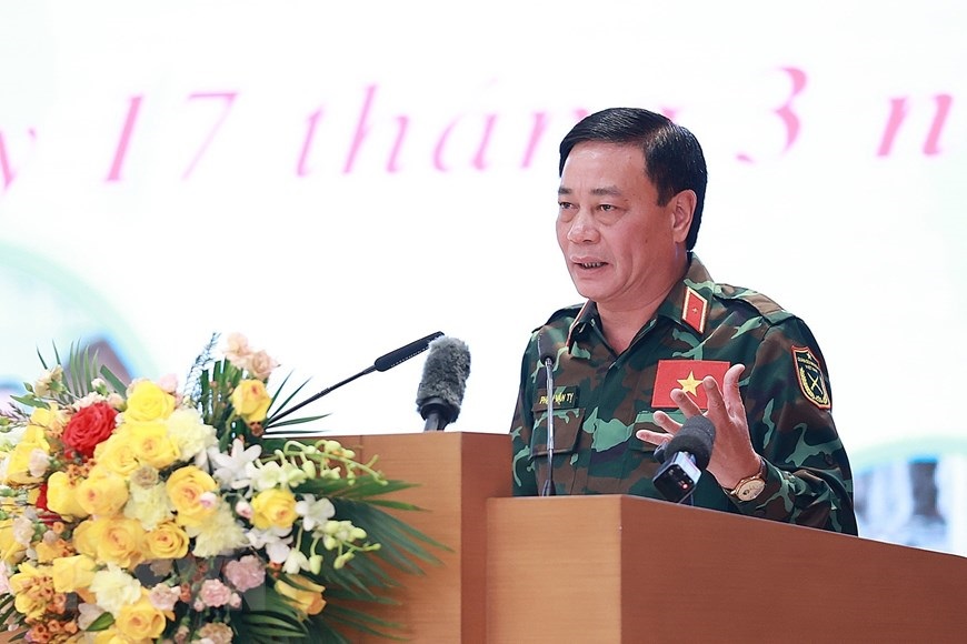Đại tướng Phan Văn Giang, Bộ trưởng Bộ Quốc phòng tặng quà cho các cá nhân. (Ảnh: Dương Giang/TTXVN)