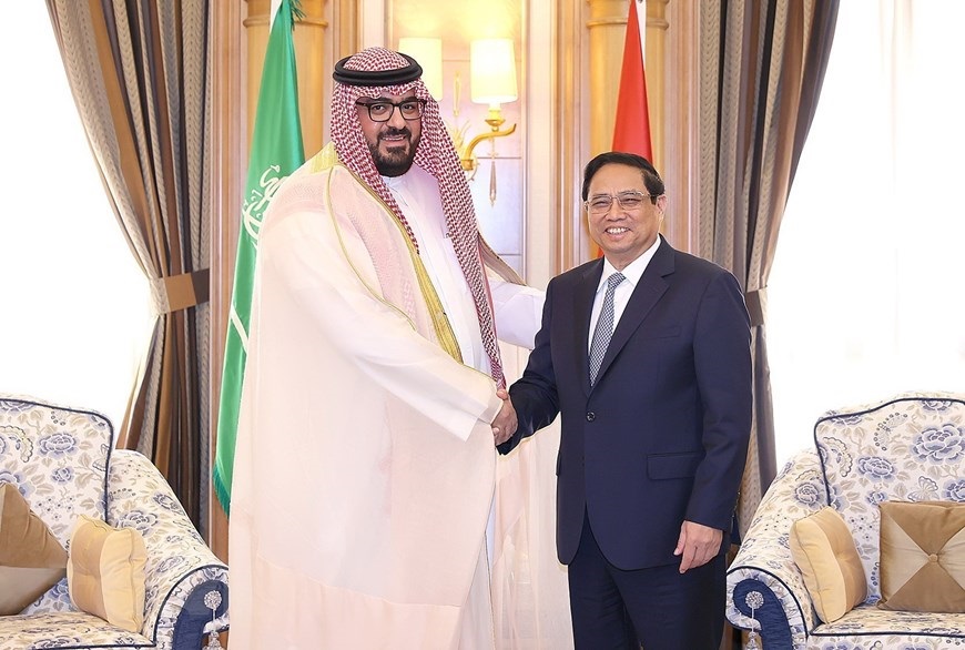 Thủ tướng Phạm Minh Chính tiếp ông Ahmed Al-Rajhi, Bộ trưởng Bộ Nguồn Nhân lực và Phát triển Xã hội Saudi Arabia. (Ảnh: Dương Giang/TTXVN)