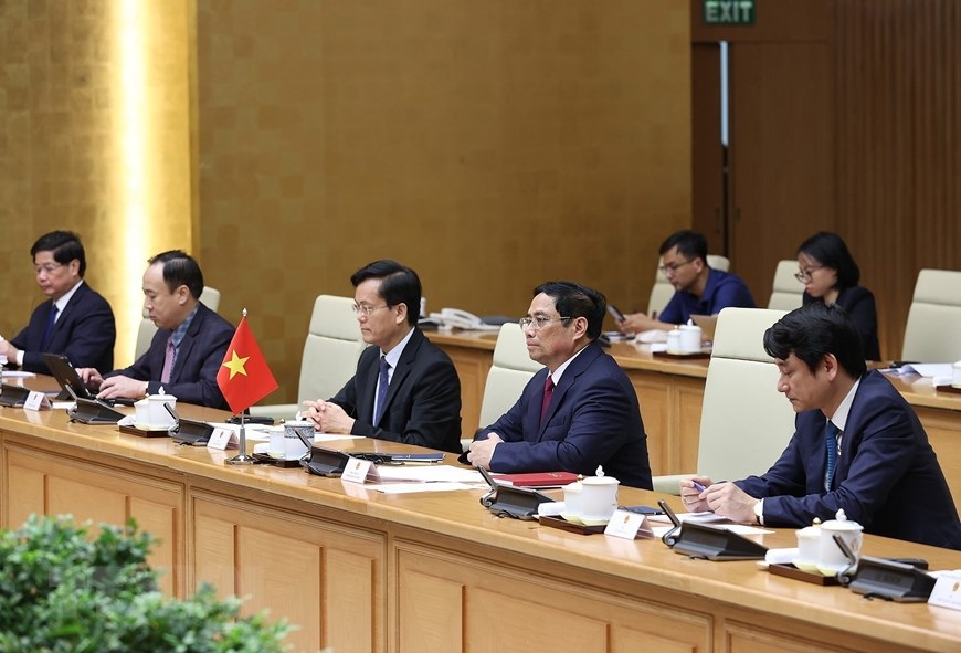 Thủ tướng Phạm Minh Chính tiếp Chủ tịch Quốc hội Cộng hòa Mozambique bà Esperanca Laurinda Francisco Nhiuane Bias (Ảnh: Dương Giang/TTXVN)