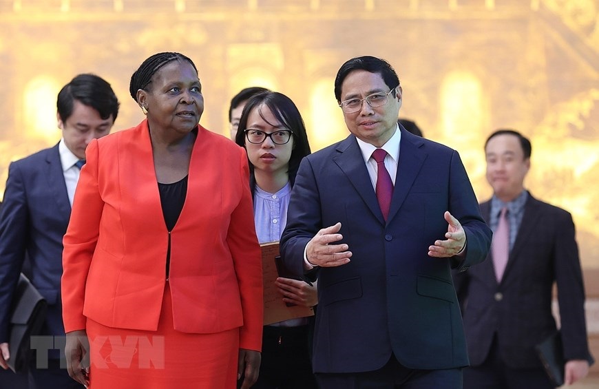 Thủ tướng Phạm Minh Chính tiếp Chủ tịch Quốc hội Cộng hoà Mozambique bà Esperanca Laurinda Francisco Nhiuane Bias (Ảnh: Dương Giang/TTXVN)