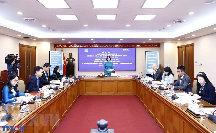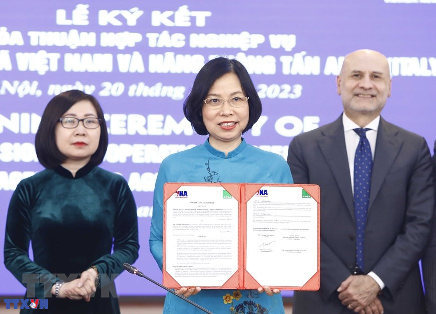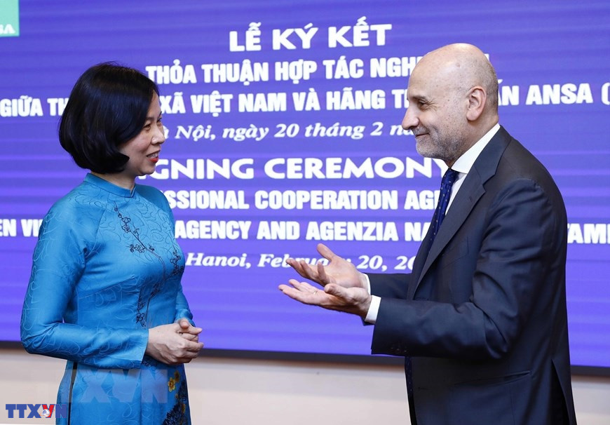 Chiều 20/2/2023, lễ ký kết thỏa thuận hợp tác (trực tuyến) giữa Thông tấn xã Việt Nam và hãng thông tấn ANSA (Italy) đã diễn ra tại Trụ sở Thông tấn xã Việt Nam.