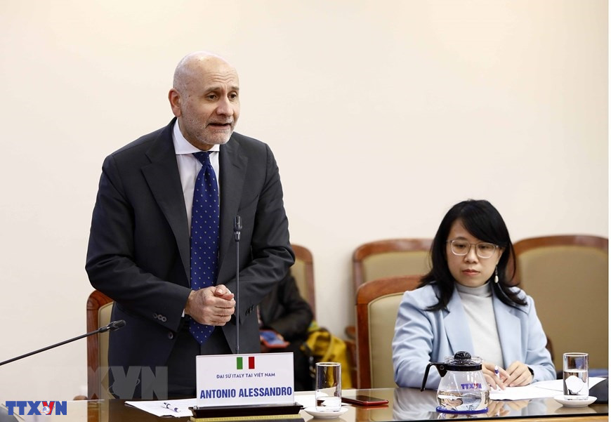 Đại sứ Cộng hòa Italy tại Việt Nam Antonio Alessandro phát biểu tại buổi lễ. (Ảnh: An Đăng/TTXVN)