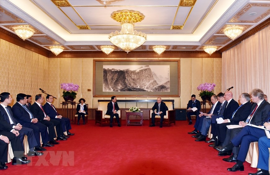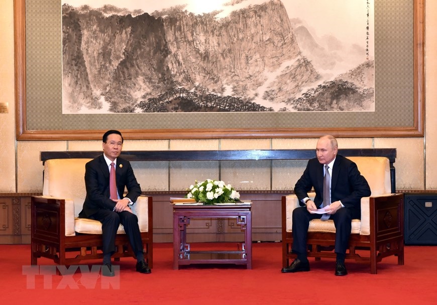 Hà Nội (TTXVN 17/10/2023) Nhân tham dự Diễn đàn Cấp cao Hợp tác Quốc tế Vành đai và Con đường, Chủ tịch nước Võ Văn Thưởng đã gặp Tổng thống Nga Vladimir Putin, gặp Ủy viên trưởng Nhân đại Toàn quốc Trung Quốc Triệu Lạc Tế.