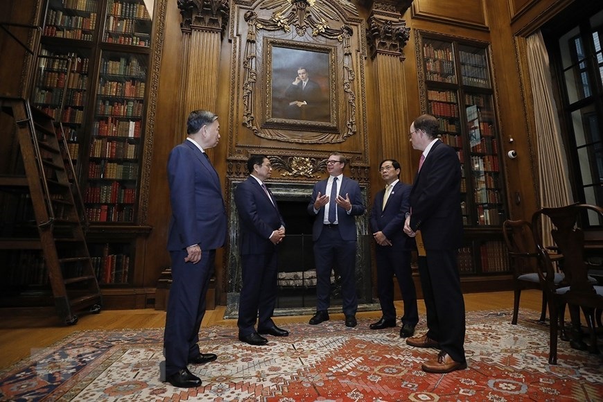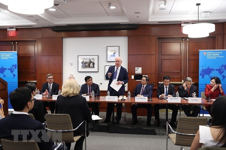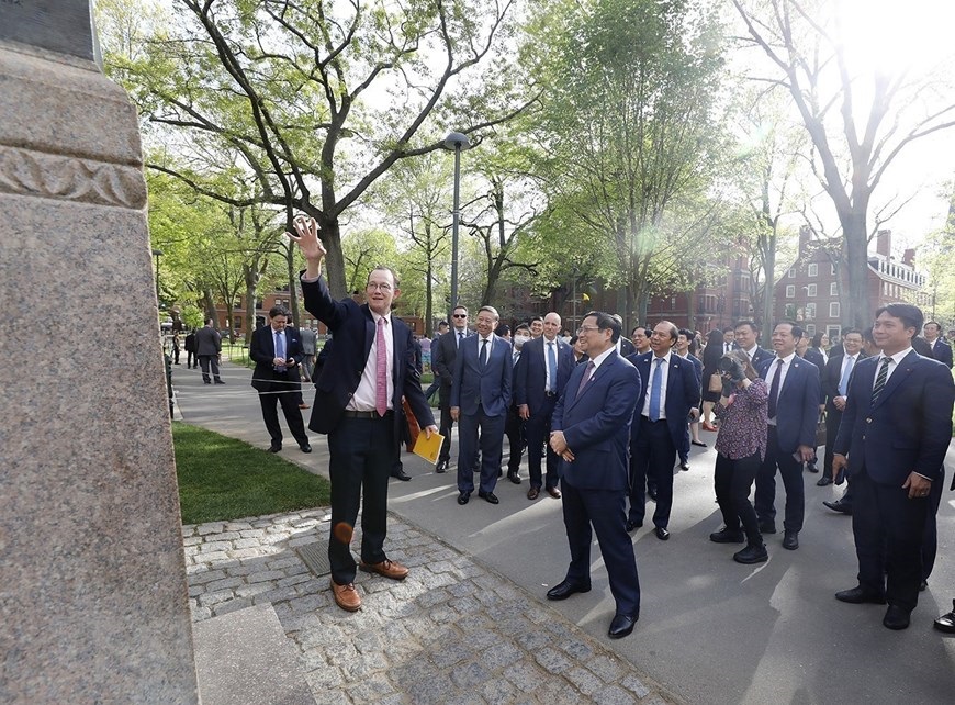 Thủ tướng Phạm Minh Chính thăm Trường Đại học Harvard. (Ảnh: Dương Giang/TTXVN)