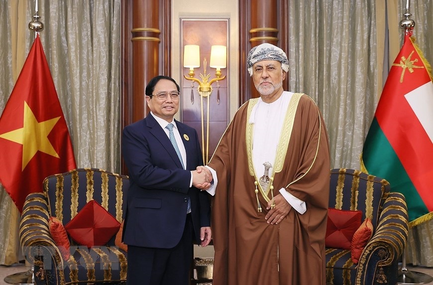 Thủ tướng Phạm Minh Chính gặp Phó Thủ tướng Vương quốc Hồi giáo Oman Sayyid Shihab. (Ảnh: Dương Giang/TTXVN)