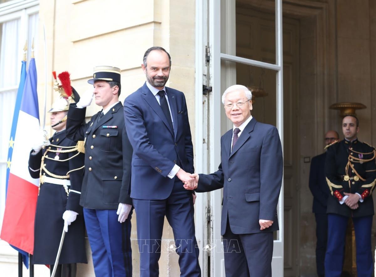 Tổng Bí thư Nguyễn Phú Trọng hội kiến với Thủ tướng Pháp Édouard Phillippe (26/3/2018). Ảnh : Trí Dũng – TTXVN.