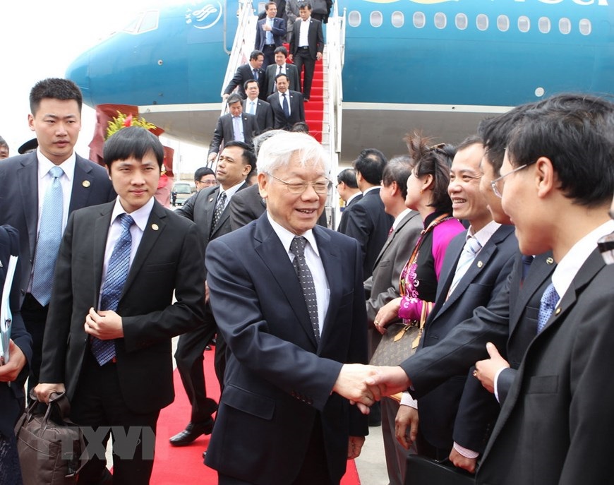 Tổng Bí thư Nguyễn Phú Trọng tại Sân bay Quốc tế Bắc Kinh. (Ảnh: Trí Dũng/TTXVN)