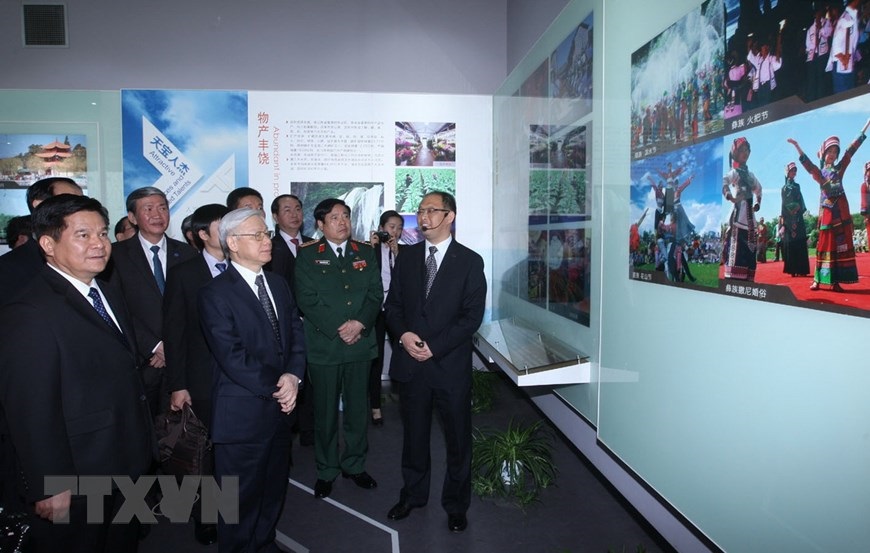Tổng Bí thư Nguyễn Phú Trọng thăm Nhà Triển lãm quy hoạch thành phố Côn Minh. (Ảnh: Trí Dũng/TTXVN)