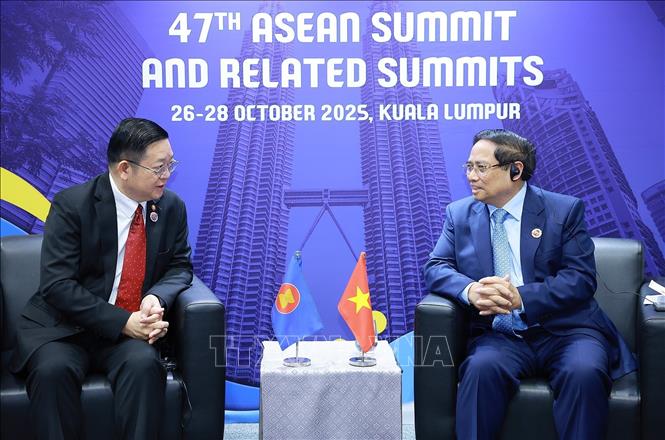Hà Nội (TTXVN 26/10/2025) Theo đặc phái viên TTXVN, nhân tham dự Hội nghị Cấp cao ASEAN lần thứ 47 và các Hội nghị Cấp cao liên quan tại Kuala Lumpur (Malaysia), chiều 26/10, Thủ tướng Chính phủ Phạm Minh Chính đã có các cuộc gặp với Thủ tướng Lào Sonexay Siphandone, Thủ tướng Nhật Bản Takaichi Sanae, Tổng Thư ký ASEAN Kao Kim Hourn, Phó Chủ tịch Ngân hàng Thế giới (WB) Carlos Felipe Jaramillo và Chủ tịch Liên đoàn Bóng đá Thế giới (FIFA) Gianni Infantino.