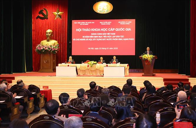 Hà Nội (TTXVN 22/1/2025) Sáng 22/1, Học viện Chính trị quốc gia Hồ Chí Minh phối hợp với Ban Tuyên giáo Trung ương tổ chức Hội thảo khoa học quốc gia "Đảng Cộng sản Việt Nam - 95 năm kiên định mục tiêu độc lập dân tộc và chủ nghĩa xã hội, xây dựng đất nước phồn vinh, hạnh phúc".