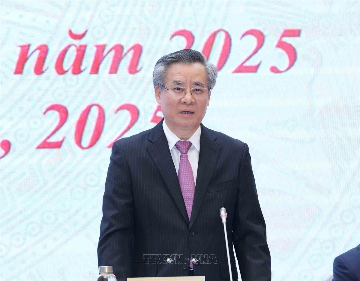 Đồng chí Lại Xuân Môn, Uỷ viên Trung ương Đảng, Phó Trưởng Ban Thường trực Ban Tuyên giáo và Dân vận Trung ương phát biểu tại họp báo (15/10/2025). Ảnh: Phương Hoa - TTXVN