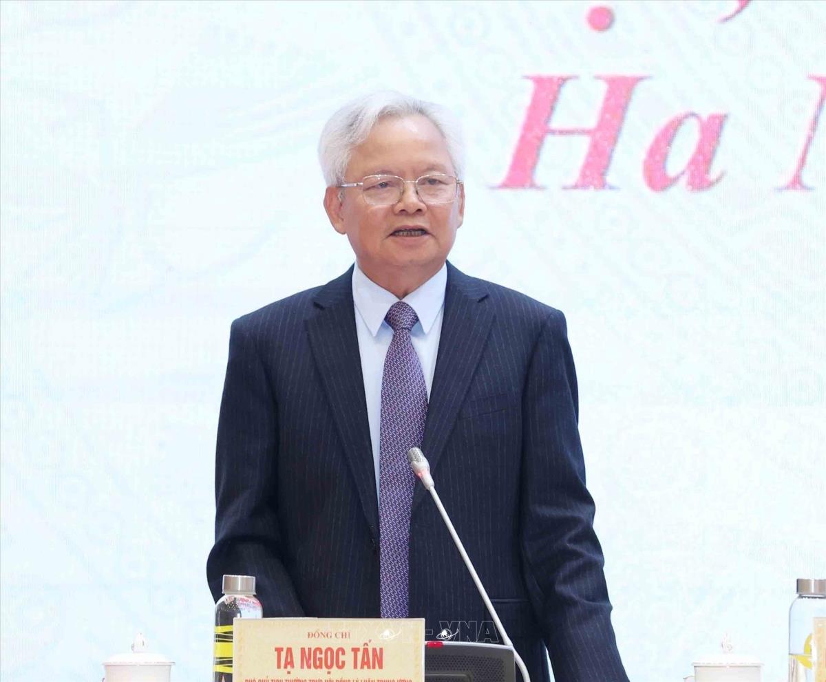 GS.TS Tạ Ngọc Tấn, Phó Chủ tịch Thường trực Hội đồng Lý luận Trung ương trả lời câu hỏi tại họp báo (15/10/2025). Ảnh: Phương Hoa - TTXVN