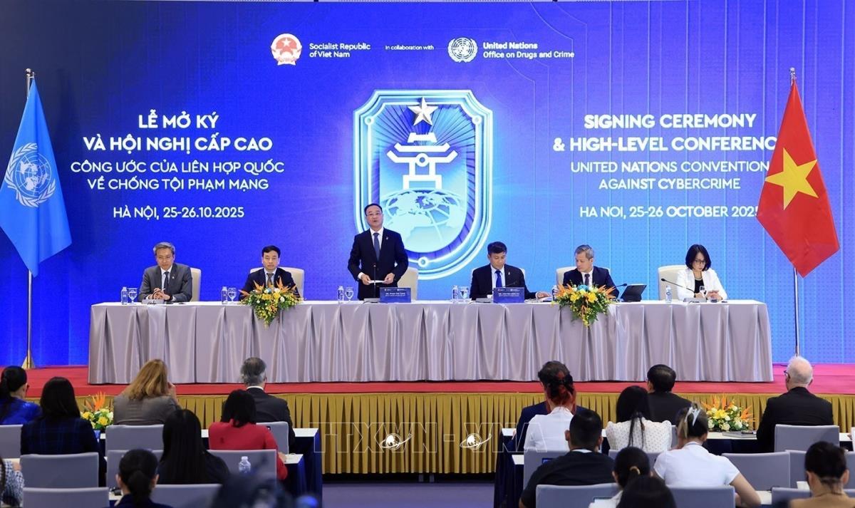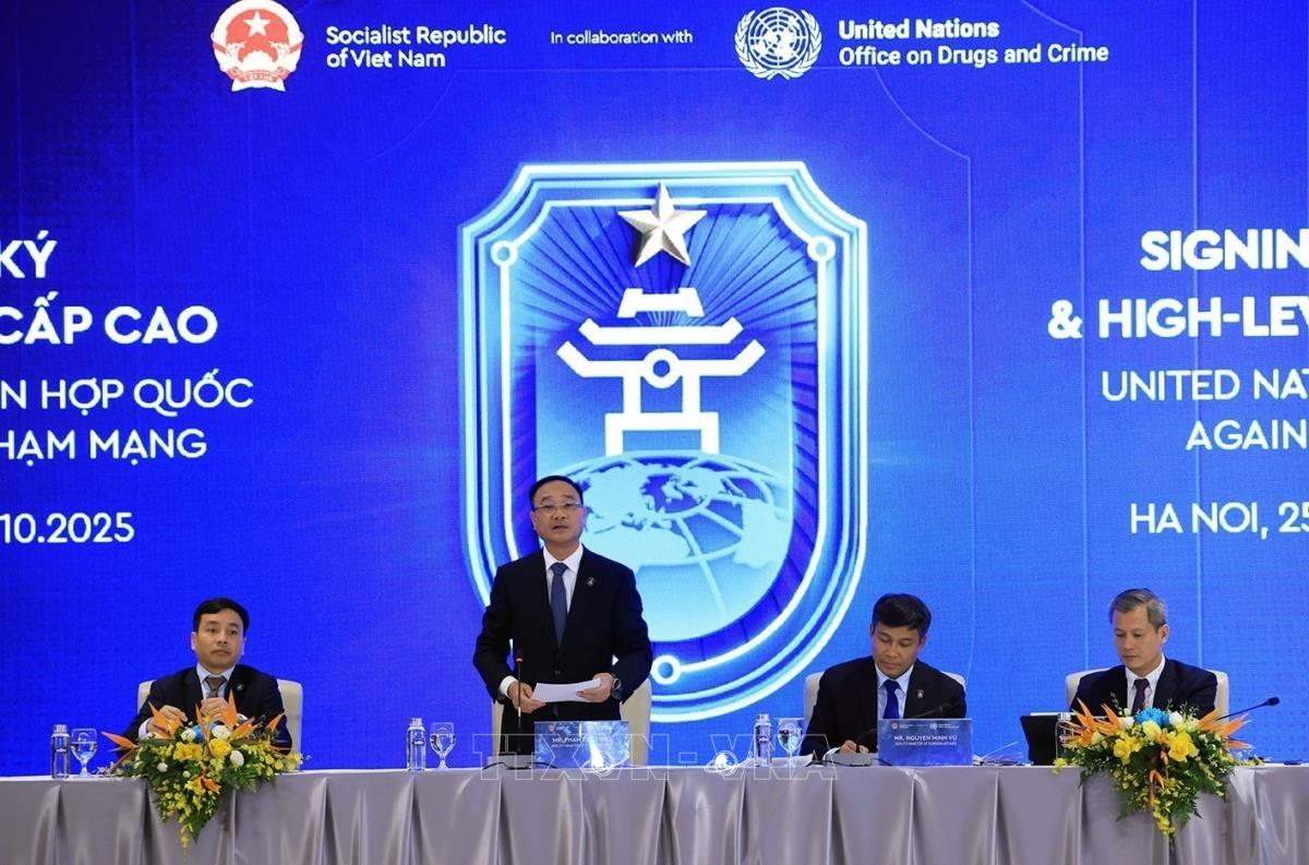 Hà Nội (TTXVN 26/10/2025) Chiều 26/10/2025, tại Trung tâm Hội nghị Quốc gia (Hà Nội), Bộ Công an và Bộ Ngoại giao phối hợp tổ chức Họp báo quốc tế thông báo kết quả Lễ mở ký và Hội nghị cấp cao Công ước của Liên hợp quốc về chống tội phạm mạng (Công ước Hà Nội).