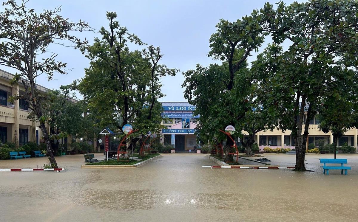 Trường Tiểu học Phú Mỹ 1 (phường Mỹ Thượng, thành phố Huế) bị ngập sâu (3/11/2025). Ảnh: Văn Dũng-TTXVN