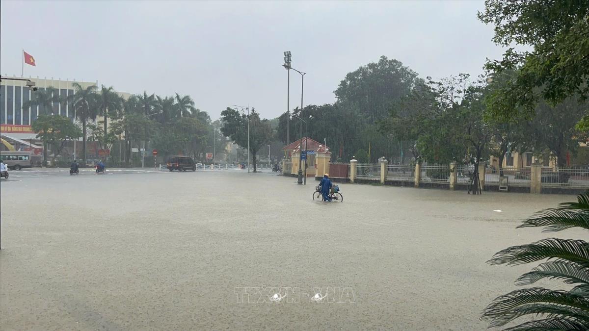 Tuyến đường trung tâm thành phố Huế như Hùng Vương, Lê Quý Đôn, Đống Đa, Trần Hưng Đạo bị ngập sâu (3/11/2025). Ảnh: Văn Dũng-TTXVN