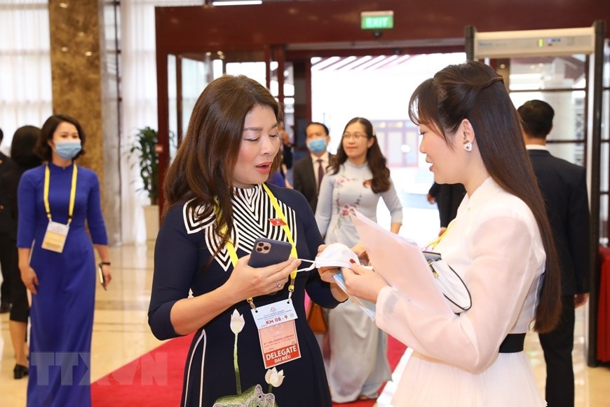 Các đại biểu sử dụng khẩu trang dự phiên khai mạc tại Hà Nội. (Ảnh: Văn Điệp/TTXVN)