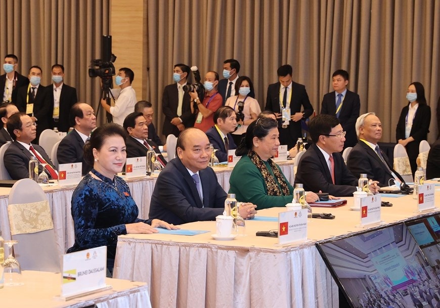 Chủ tịch Quốc hội Nguyễn Thị Kim Ngân, Chủ tịch AIPA- 41, Thủ tướng Nguyễn Xuân Phúc, Chủ tịch ASEAN 2020 và các đại biểu. (Ảnh: Thống Nhất/TTXVN)