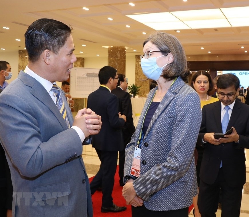 Các đại biểu quốc tế trao đổi bên lề lễ khai mạc. (Ảnh: Văn Điệp/TTXVN)