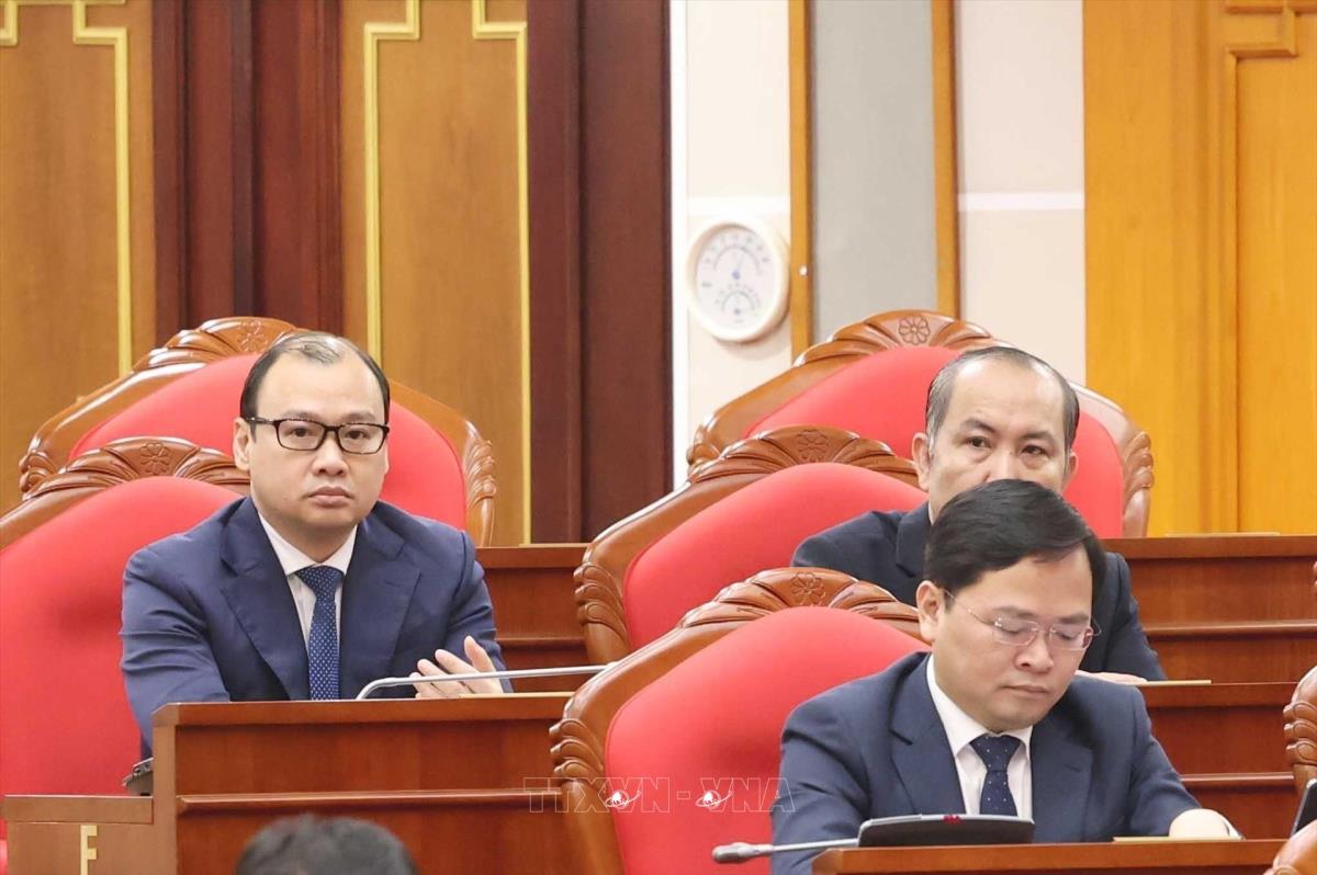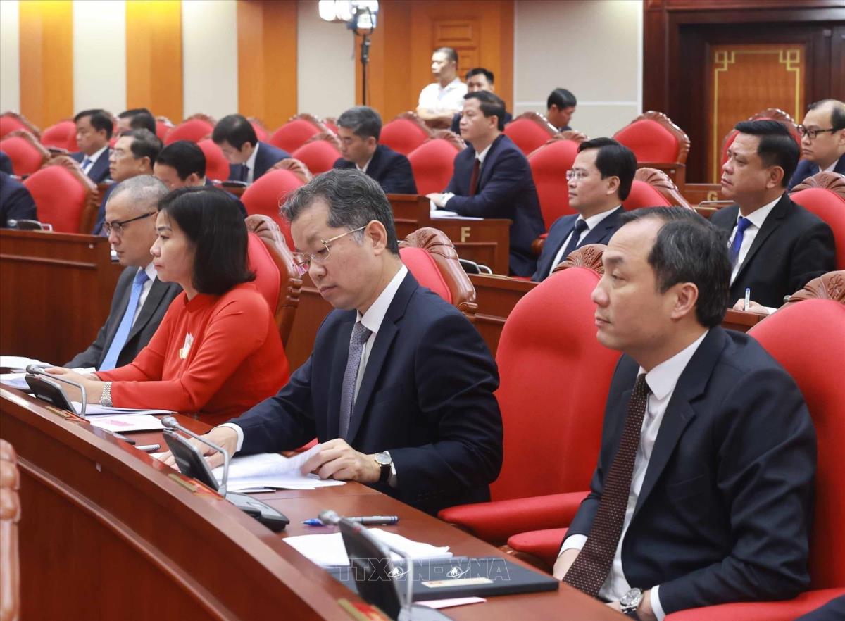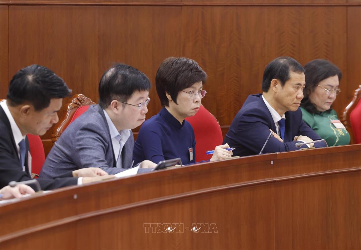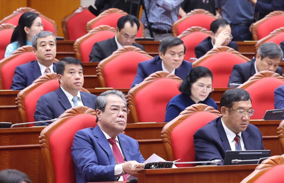 Các đồng chí Ủy viên Trung ương Đảng dự Hội nghị lần thứ 11 Ban Chấp hành Trung ương Đảng khóa XIII (10/4/2025). Ảnh: TTXVN