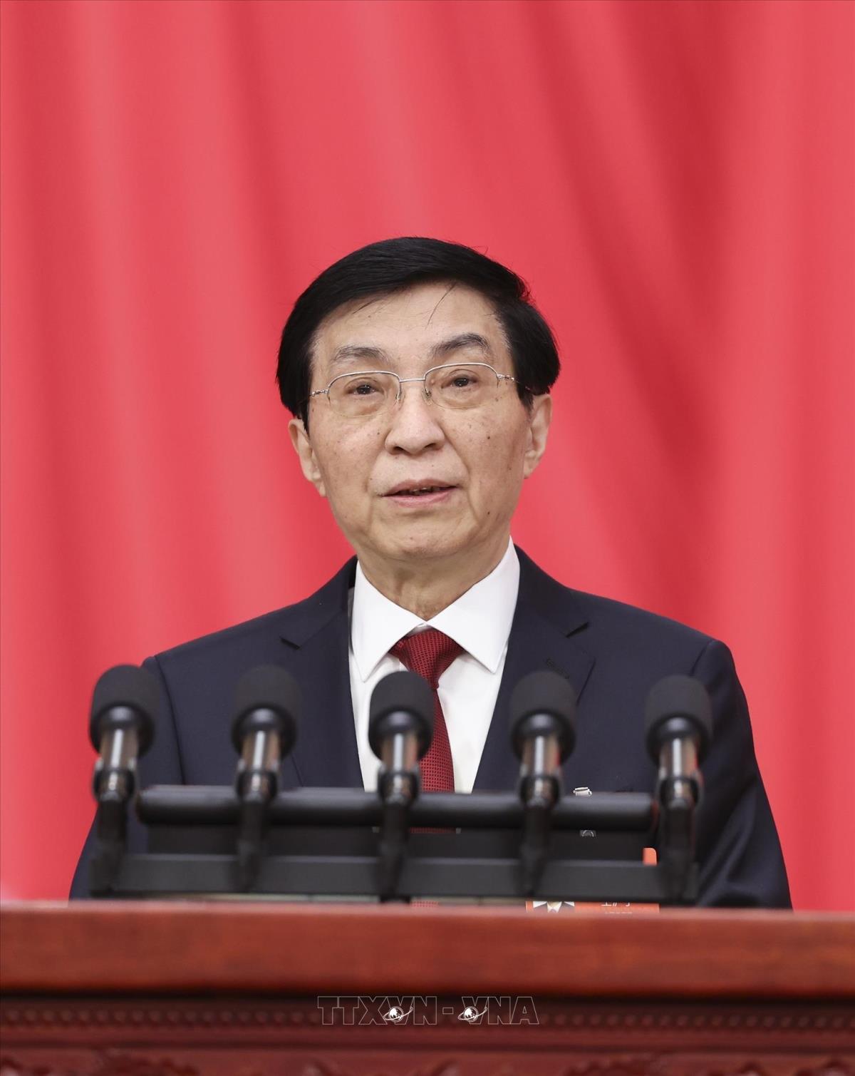 Chủ tịch Chính hiệp Vương Hộ Ninh phát biểu tại lễ khai mạc Kỳ họp thứ tư của Ủy ban toàn quốc Hội nghị Chính trị hiệp thương nhân dân toàn quốc Trung Quốc khóa XIV ở Bắc Kinh ngày 4/3/2026. Ảnh: THX/TTXVN