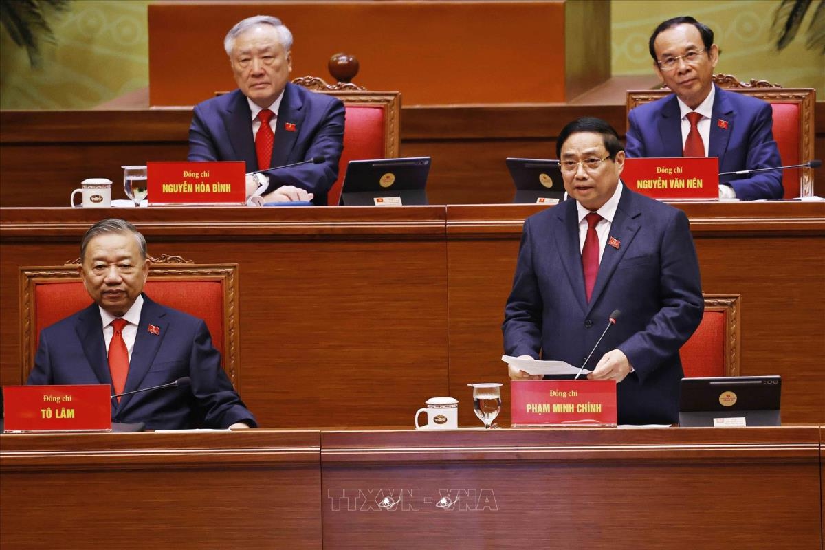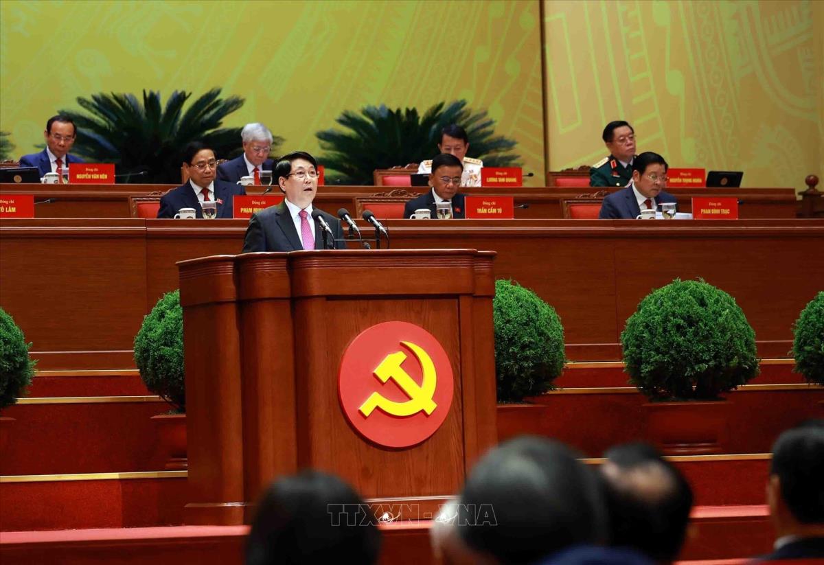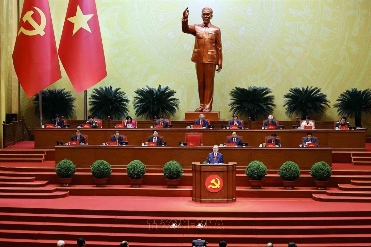 Tổng Bí thư Tô Lâm trình bày Báo cáo của Ban Chấp hành Trung ương Đảng khóa XIII về các văn kiện trình Đại hội XIV của Đảng (20/1/2026). Ảnh: TTXVN