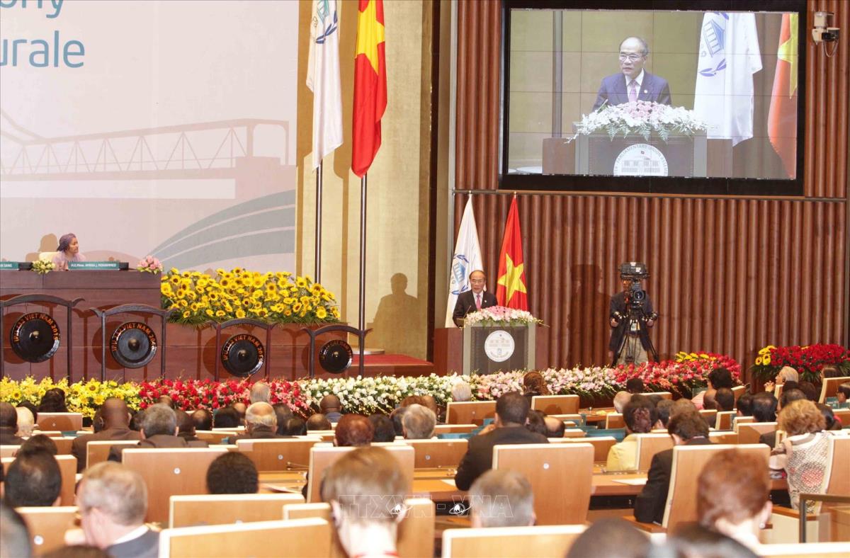 Thay mặt Nhà nước và nhân dân Việt Nam, Chủ tịch nước gửi đến các vị khách quý đại diện 166 thành viên của IPU, 10 thành viên liên kết, các quan sát viên và các tổ chức quốc tế, lời chào, lời chúc mừng nồng nhiệt, tình cảm chân thành, lòng mến khách của Nhà nước và nhân dân Việt Nam.