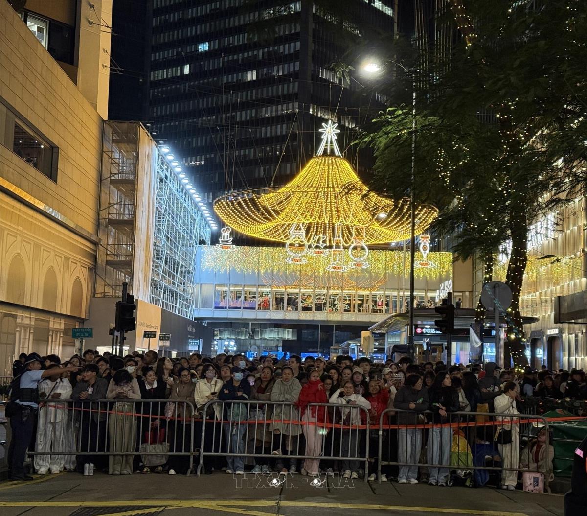 Hàng dài người dân và du khách có mặt từ sớm để tham dự sự kiện đếm ngược đón Năm mới ở Hong Kong. Ảnh: Mạc Luyện - PV TTXVN tại Hong Kong