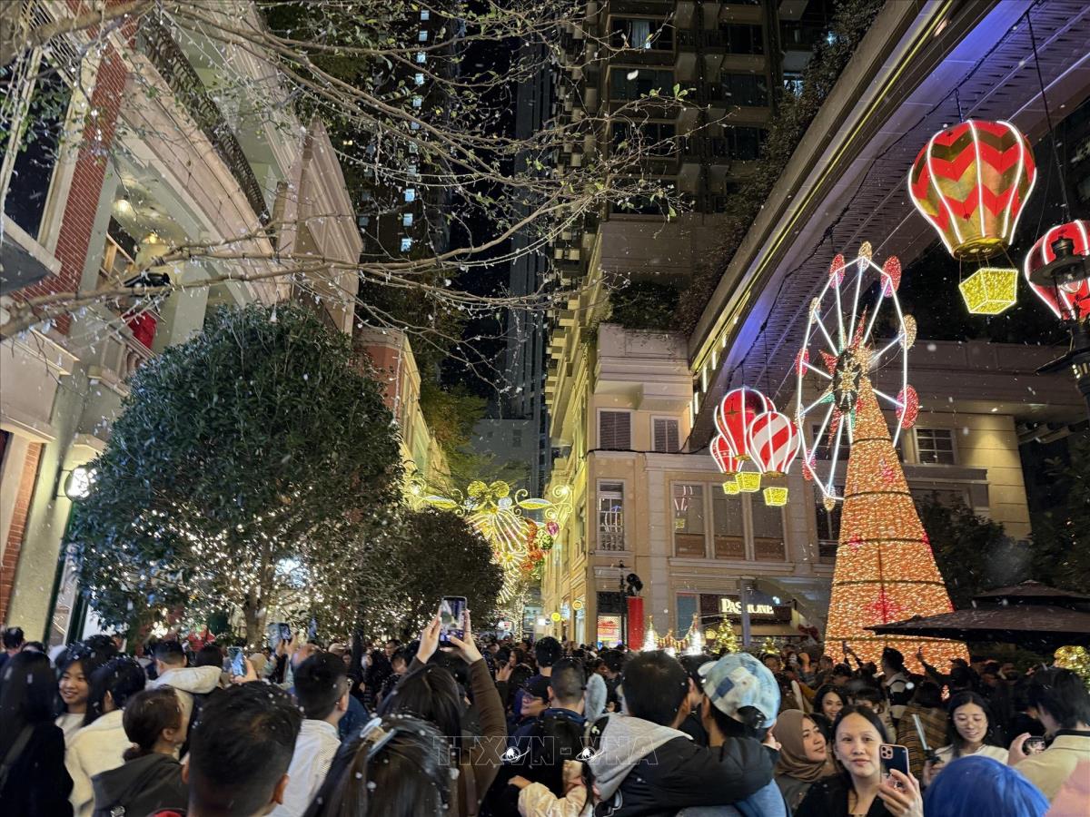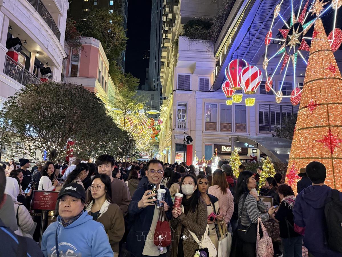 Người dân và du khách ghi lại hình ảnh những lưu niệm khi chuẩn bị bước sang Năm mới trên phố Lee Tung. Ảnh: Mạc Luyện - PV TTXVN tại Hong Kong