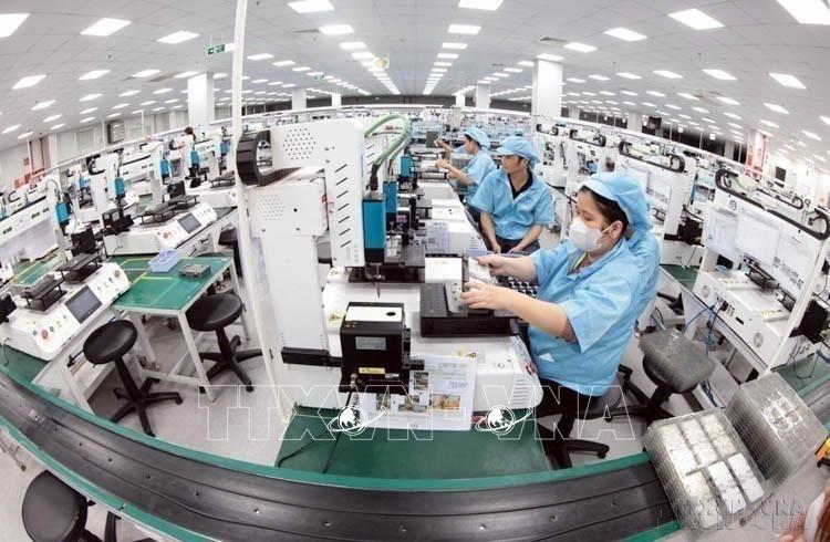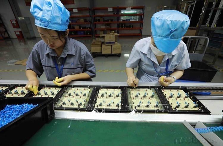 Dây chuyền sản xuất phục vụ cho ngành công nghiệp điện tử tại Công ty TNHH Khvatec Thái Nguyên. Ảnh: Trần Việt - TTXVN