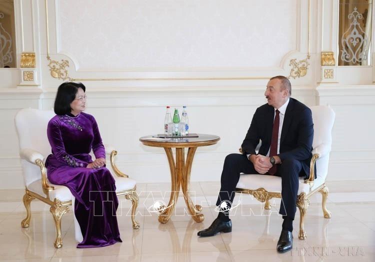 Nhân dịp tham dự Hội nghị cấp cao lần thứ 18 Phong trào không liên kết tại Cộng hòa Azerbaijan, ngày 24/10/2019, tại Thủ đô Baku, Phó Chủ tịch nước Đặng Thị Ngọc Thịnh hội kiến Tổng thống Cộng hòa Azerbaijan Ilham Aliyev. Ảnh: Phương Hoa – TTXVN