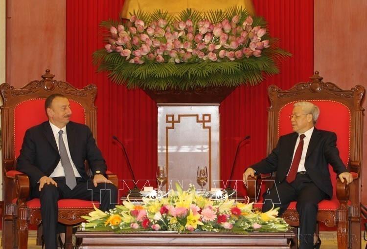Tổng Bí thư Nguyễn Phú Trọng tiếp Tổng thống Cộng hòa Azerbaijan Ilham Aliyev thăm cấp Nhà nước tới Việt Nam (Hà Nội, 19/5/2014). Ảnh: Trí Dũng – TTXVN