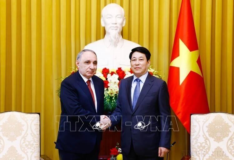 Chủ tịch nước Lương Cường tiếp ông Kamran Bayram Aliyev, Viện trưởng Viện Kiểm sát Tối cao Azerbaijan thăm và làm việc tại Việt Nam, chiều 24/3/2025. Ảnh: Lâm Khánh – TTXVN